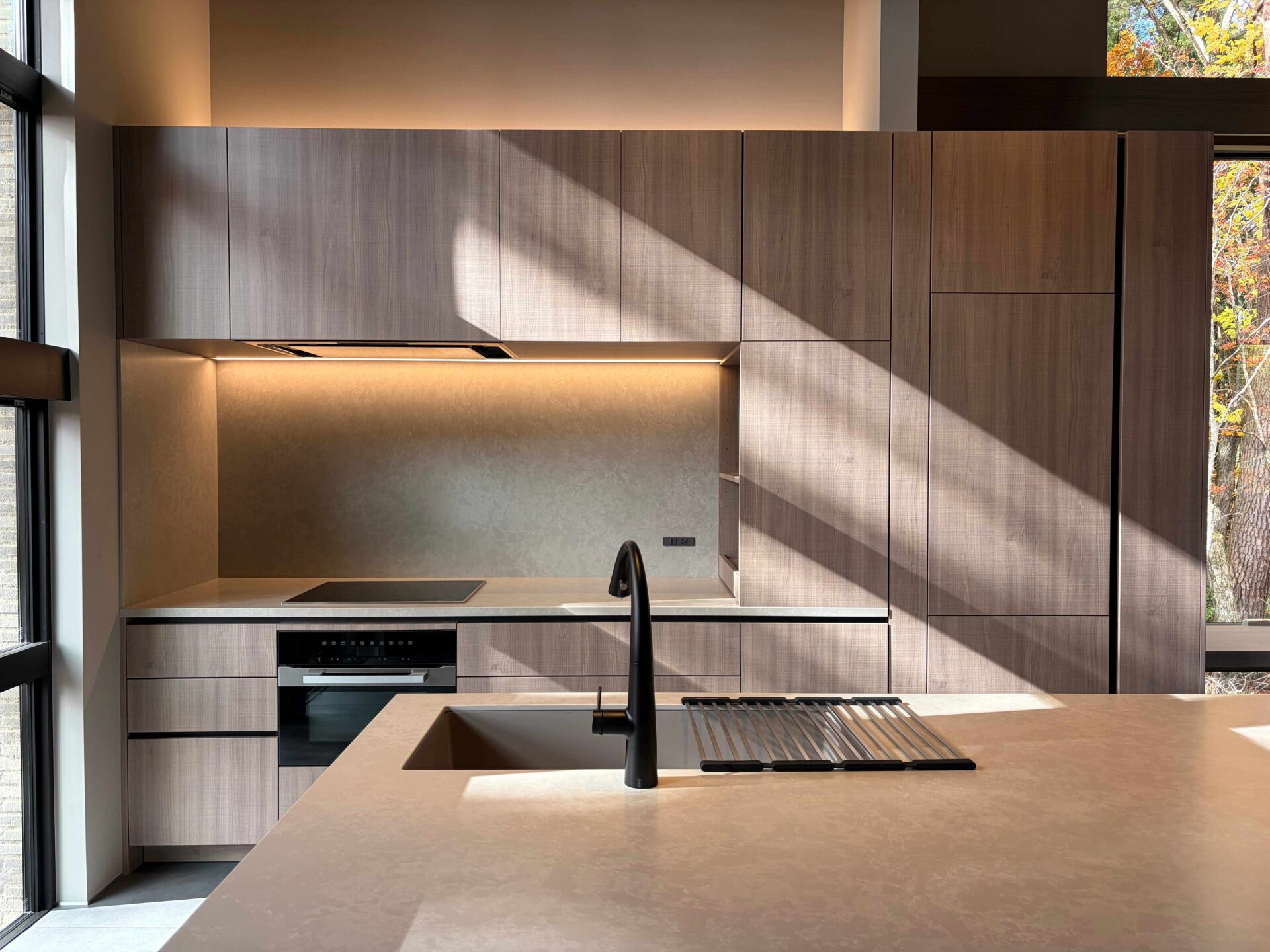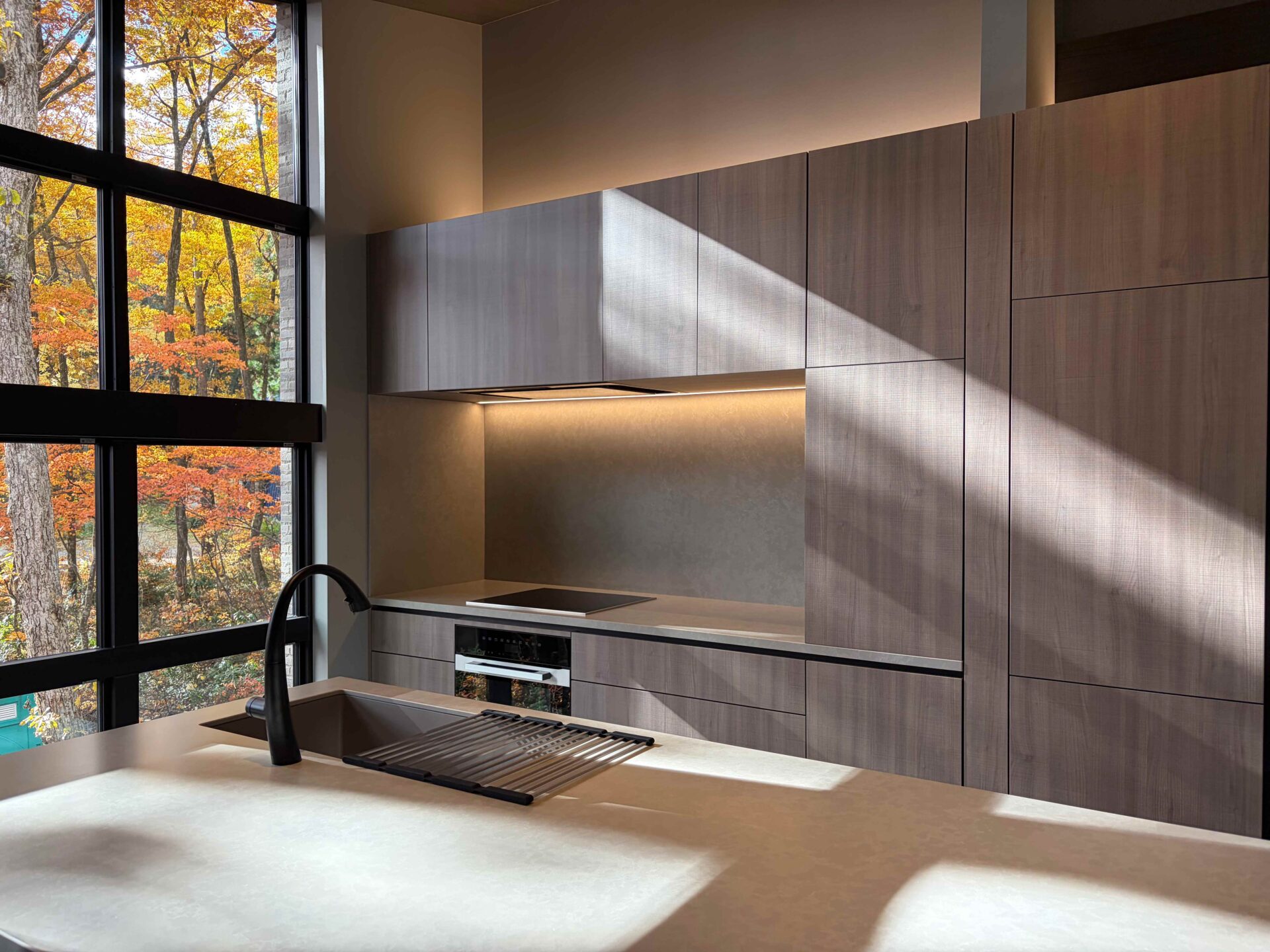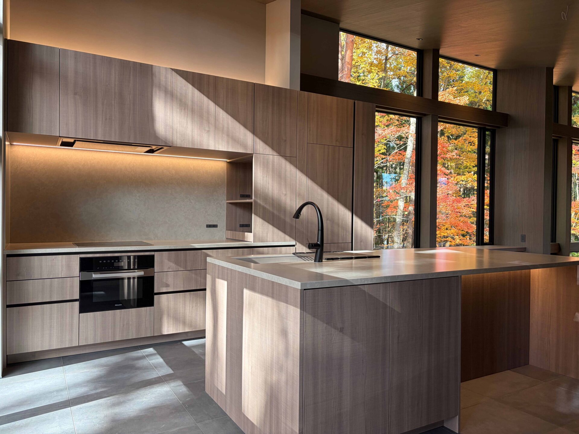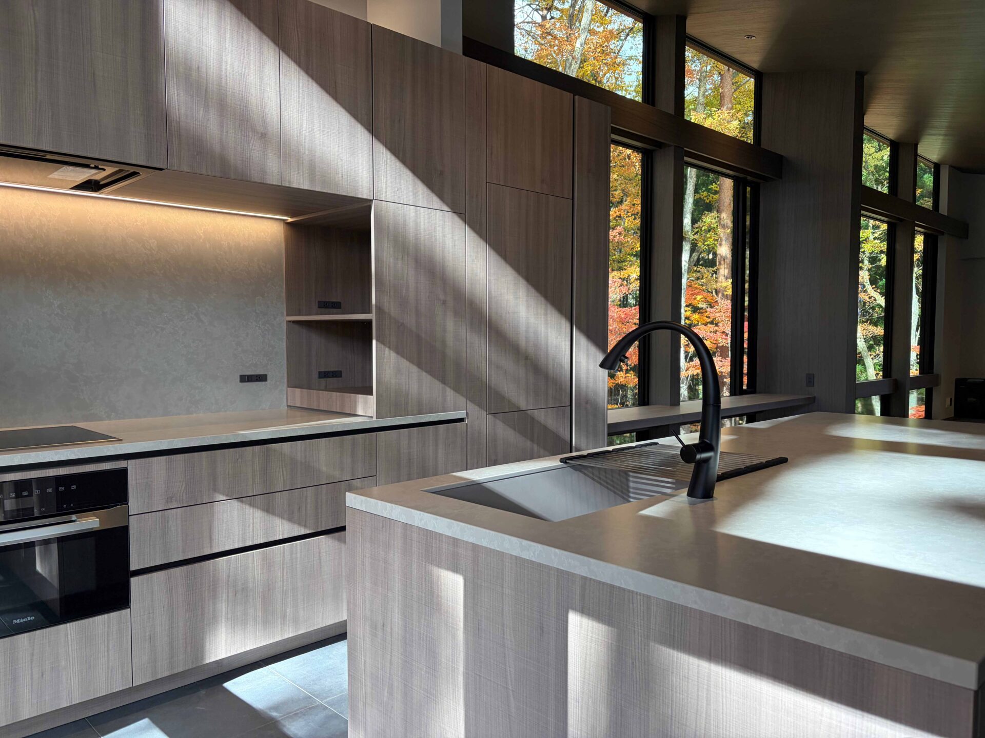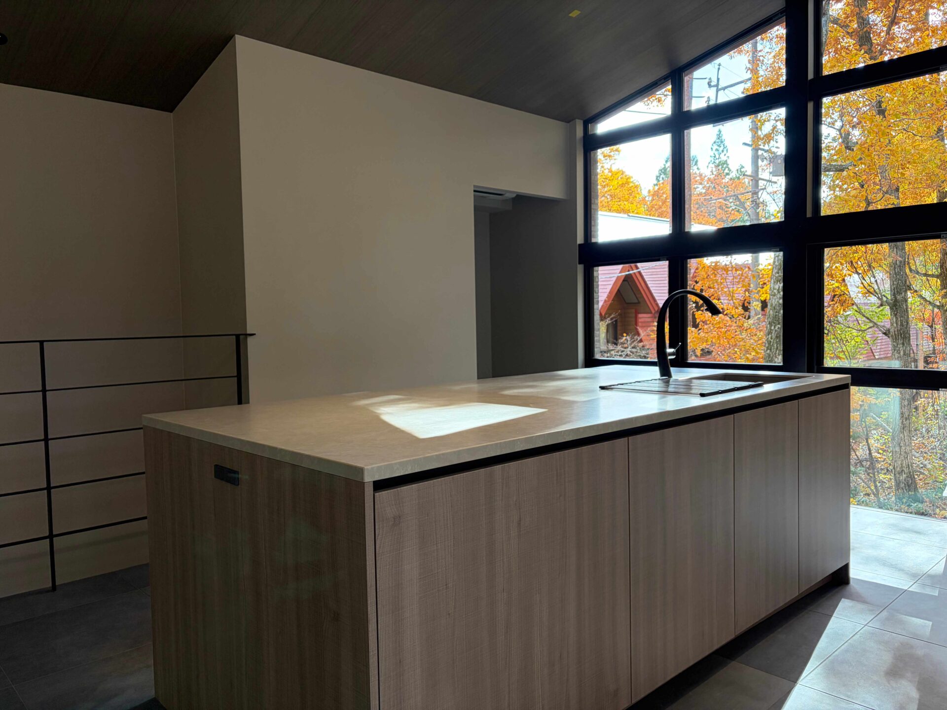 そうすることによりカウンターの使いがってがよくなり、また、レンジフードをパネルで隠すことなどができます。